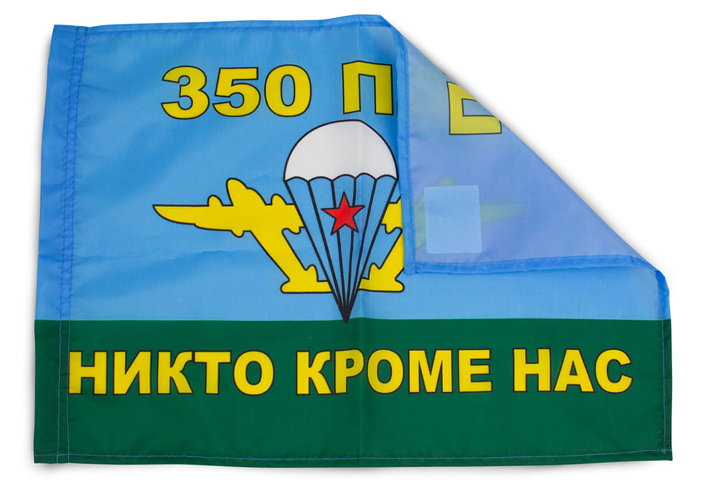 Голубое полотнище с зелёной полосой и парашютом появилось в 1948 году. Символ отражает небо, землю, готовность десантников действовать в любых условиях.