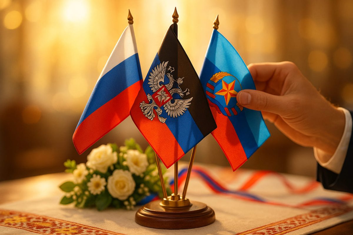 В Донецкой и Луганской Народных Республиках флаги выполняют не только декоративную, но и важнейшую государственную функцию — обозначают принадлежность территорий, символизируют их правовой статус, а также служат знаком единства жителей Донбасса.