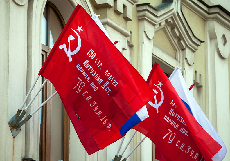 - флаг Российской Федерации — в центре или чуть левее композиции (если количество позволяет симметричное выравнивание).