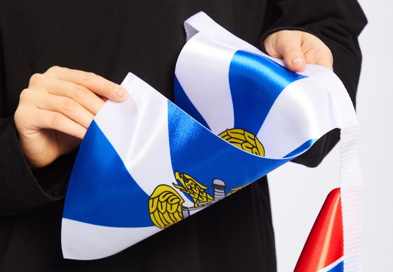 Флажки, используемые для создания ленты, могут содержать международную атрибутику, российские флаги и гербы, логотипы компании и другие изображения.